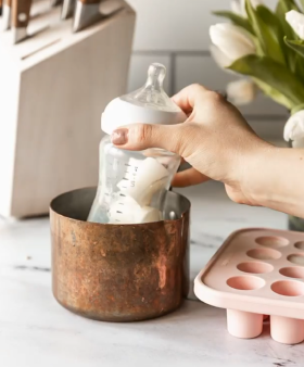 Once you have transferred your frozen breast milk portions into a bottle, there are a few different methods you can use to thaw the milk: